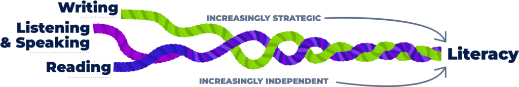 - A visual and conceptual model that connects writing to reading and oral language— three inseparable dimensions of literacy development.
