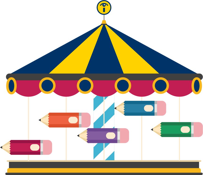 Many of us picture the heart of a carousel as the beautiful horses we ride as we go around. In the Writing Carousel, the horses are pencils. Each pencil represents a writing domain, and every rotation offers another opportunity for reflection, revision, and growth.
